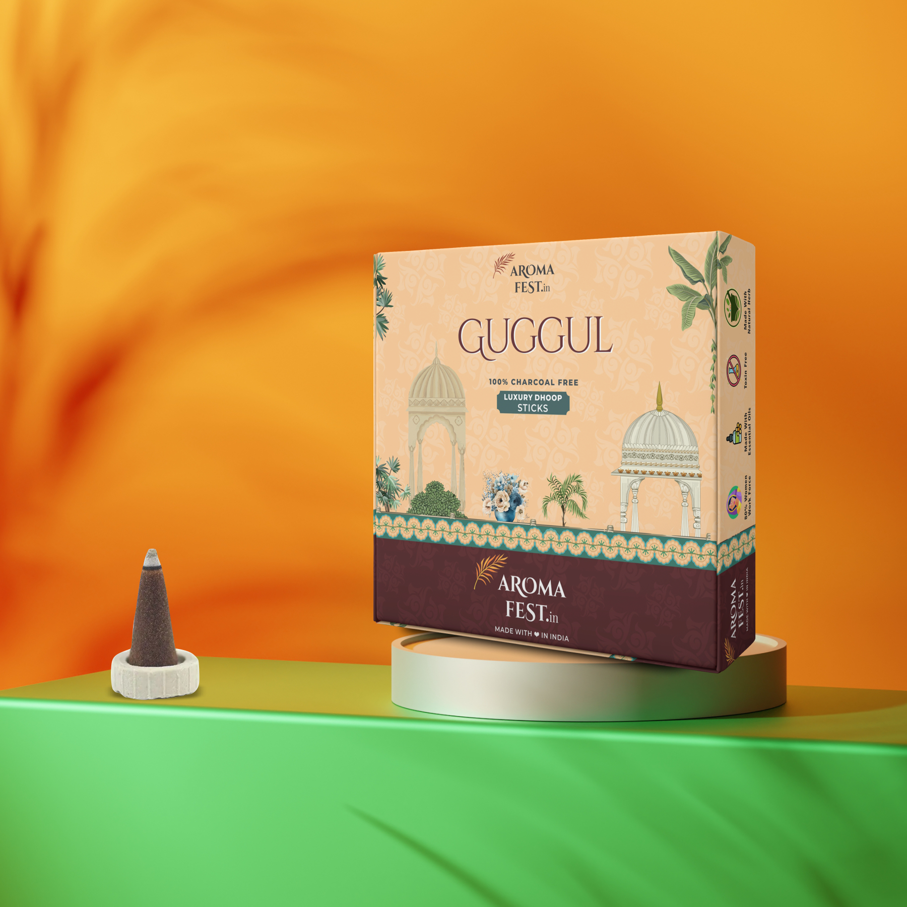 Purifying Guggal Aroma: Embrace the deep, resinous fragrance of guggal, known for its purifying and invigorating properties. This rich aroma is ideal for creating a sacred space, enhancing focus during meditation, and promoting mental clarity.